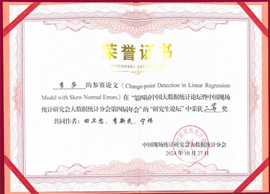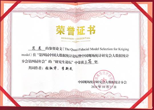 尊龙娱乐 师生参加第四届中国大数据统计论坛暨中国现场统计研究会大数据统计分会第四届年会并获优秀论文奖