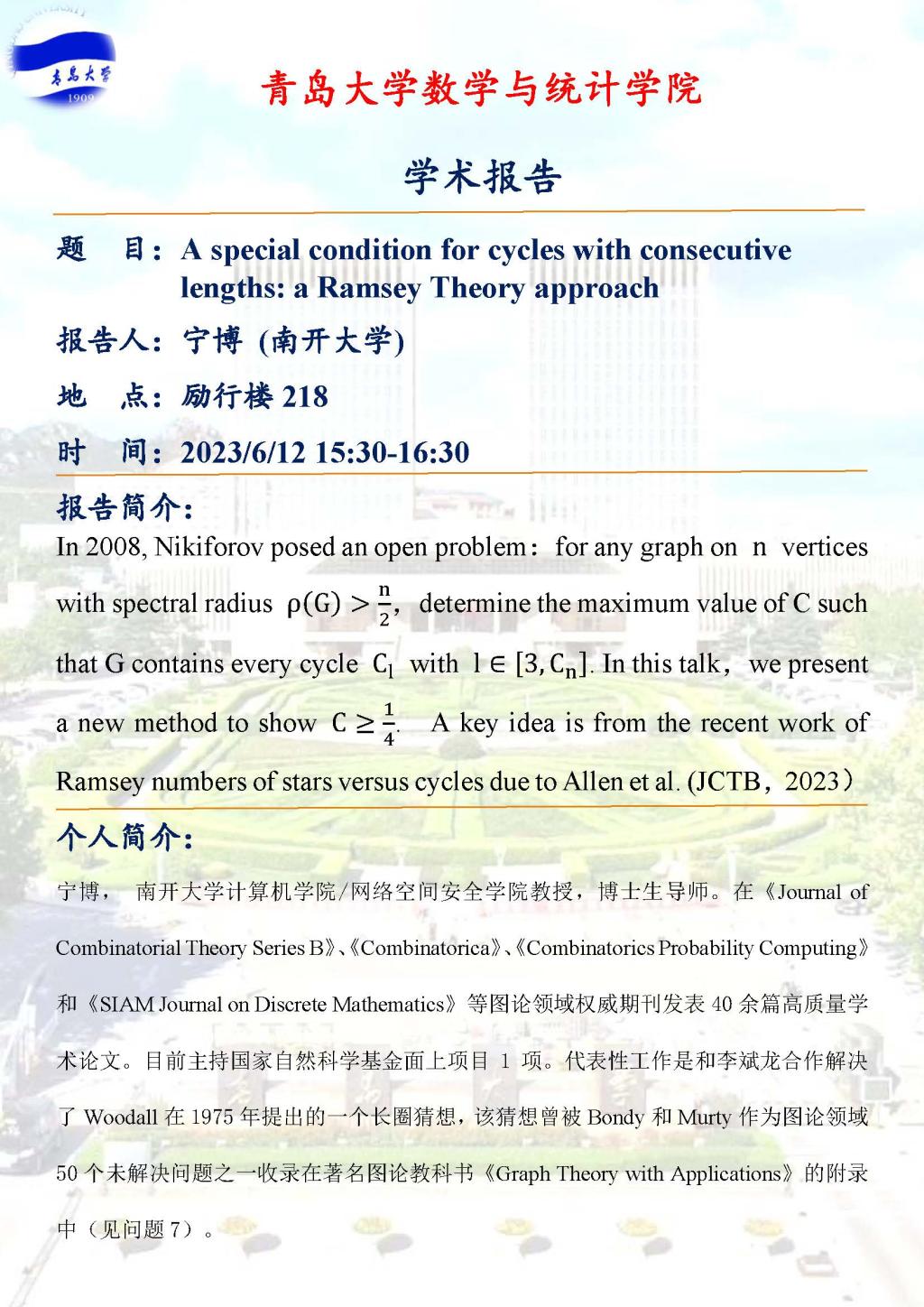 A special condition for cycles with consecutive lengths: a Ramsey Theory approach
