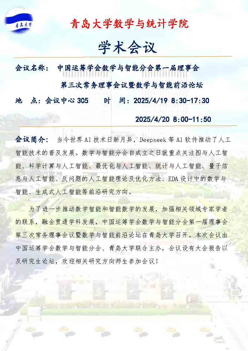 中国运筹学会数学与智能分会第一届理事会第三次常务理事会议暨数学与智能前沿论坛