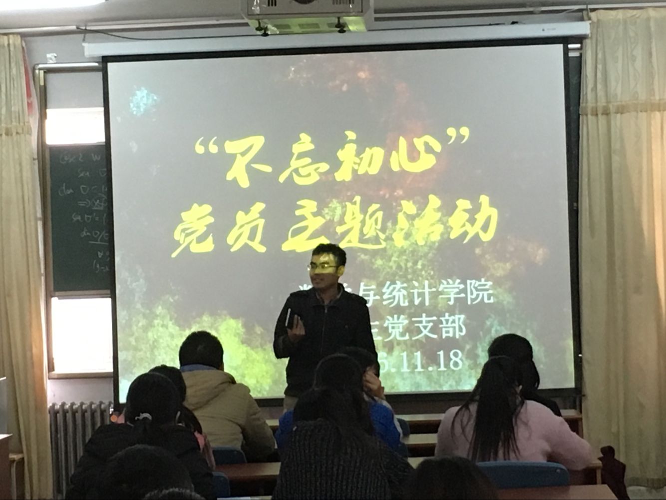 11月18日中午,尊龙凯时国际娱乐 在励行楼三楼会议室举行“不忘初心”学生党员主题活动,全体学生党员以及部分入党积极分子参加活动,由辅导员王珺鹏主持。