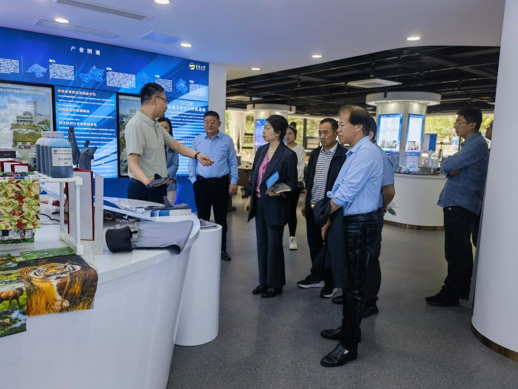 校产业研究院主任鲍文胜带领中心组全体成员及教师代表,详细参观介绍了产业院相关情况及科技转化成果情况。随后,双方围绕“服务合作赋能发展”进行了深入交流。