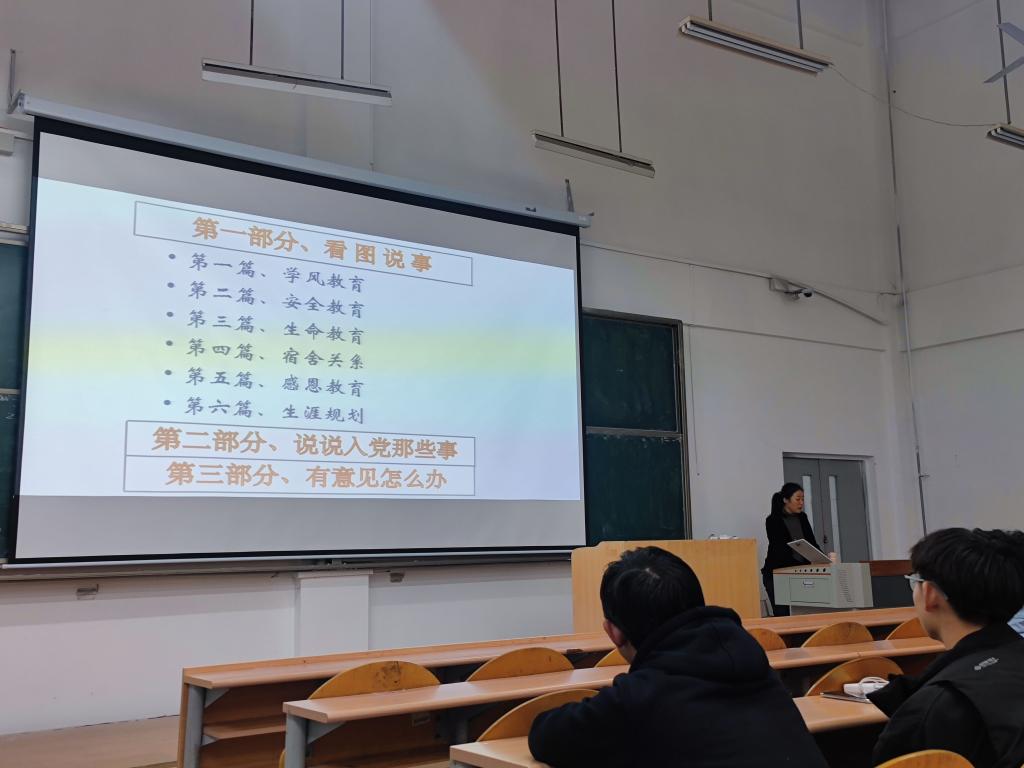 随后,张雪蕾书记讲解了大学生入党流程与入党标准,激励同学们以党员的标准严格要求自己,在四年大学生活中提升自我、完善自我。