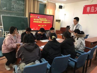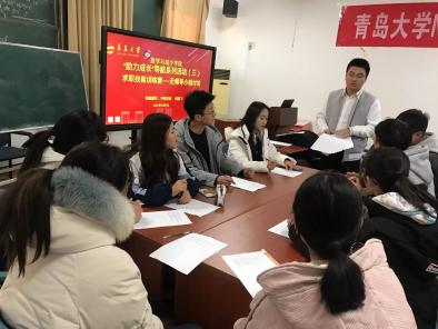 在青岛大学浮山校区励行楼302教室组织了入党积极分子的无领导小组讨论,本次活动邀请中信证券业务总监、2015级校友纪展飞进行指导,20级辅导员李玲慧观摩。参加活动的入党积极分子共分成三个小组进行讨论,针对公益组织可实施的公益项目进行交流讨论。活动流程包括每位入党积极分子轮流发言、自由讨论和代表总结三个环节。