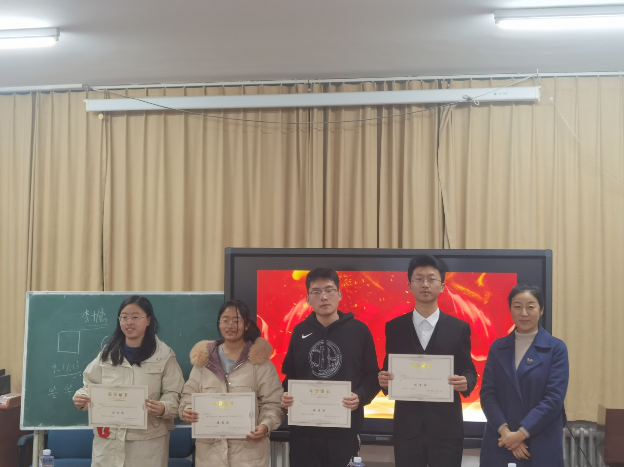 优秀奖:应数一班袁琳涵、应数一班高昱娜、应数三班薛浩田、统计二班林皓月