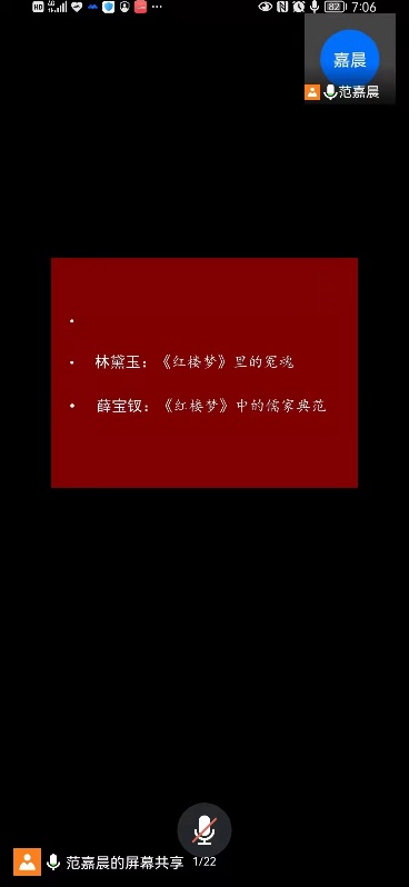 范嘉晨教授通过对林黛玉和薛宝钗两个重要人物的分析,用生动风趣的语言,与大家一起回顾了《红楼梦》这部经典名著。他从钗黛二人的肖像描写、性格特征以及当时封建社会的思想背景三方面,用自己的独特观点和视角,解读了“金玉良缘”与“木石前盟”的人物命运和悲剧爱情故事。