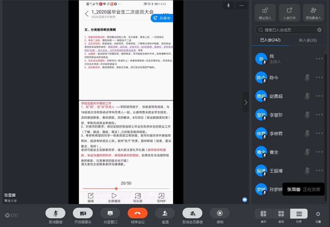 召开2016级全体毕业生视频会议,通过就业签约数据、考研二战数据、就业形势分析,线上面试指导,鼓励毕业生积极就业。尊龙娱乐
