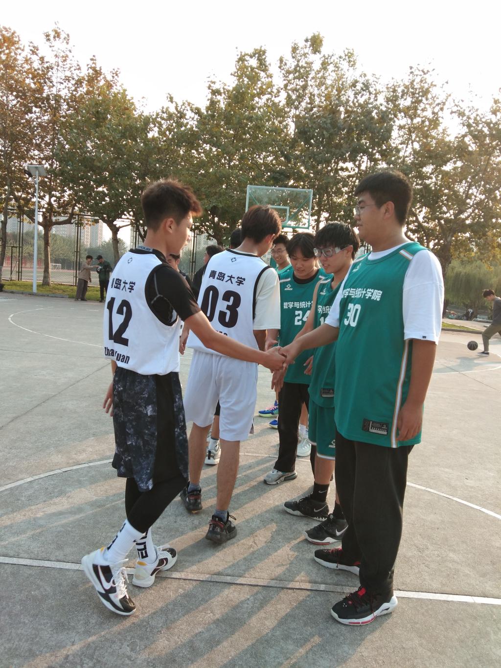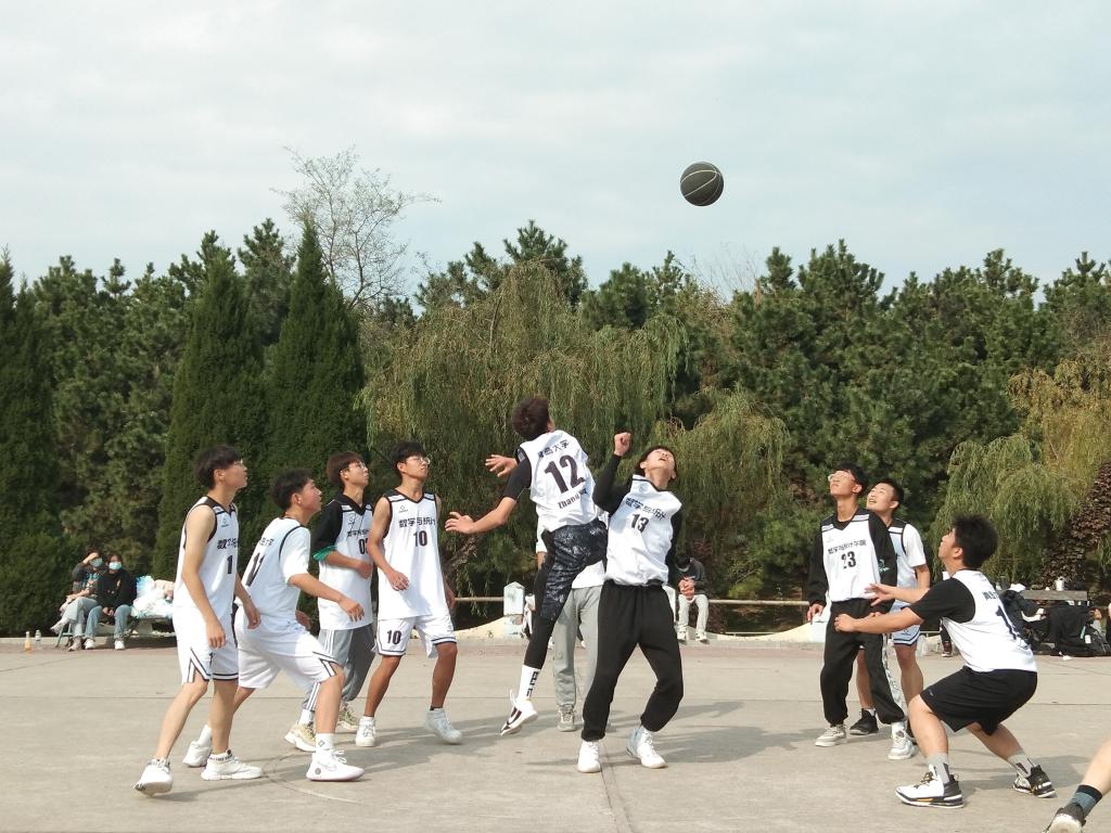 2021级迎新篮球赛在青岛大学金家岭校区东院篮球场上顺利举行。参加比赛的有来自六个班级的六支队伍和啦啦队。