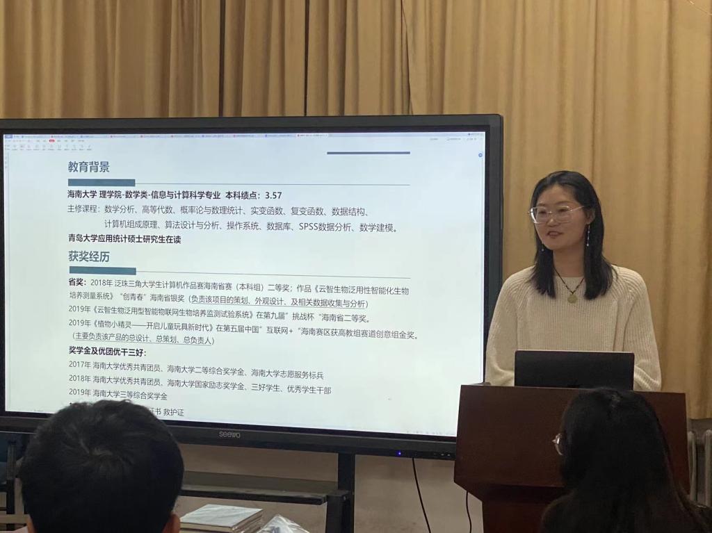 首先,各位研究生代表依次上台进行自我介绍。随后各位研究生代表结合自己在本科期间的学习经历和生活经历,为同学们解答考研、竞赛、建模所面临的各种问题。同时,各位代表较为全面地总结了本科学习期间的注意事项,为同学们敲响警钟,提醒同学们提前做好规划,脚踏实地,在打好专业基础的前提下多多参与各种竞赛,拓宽自己的视野。