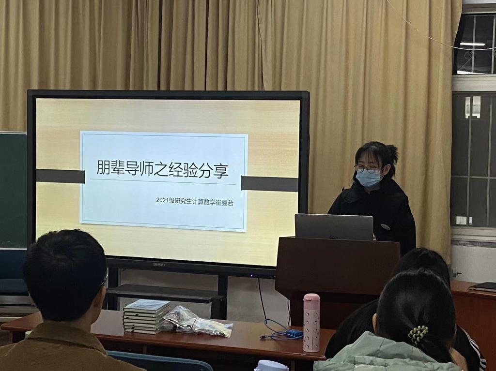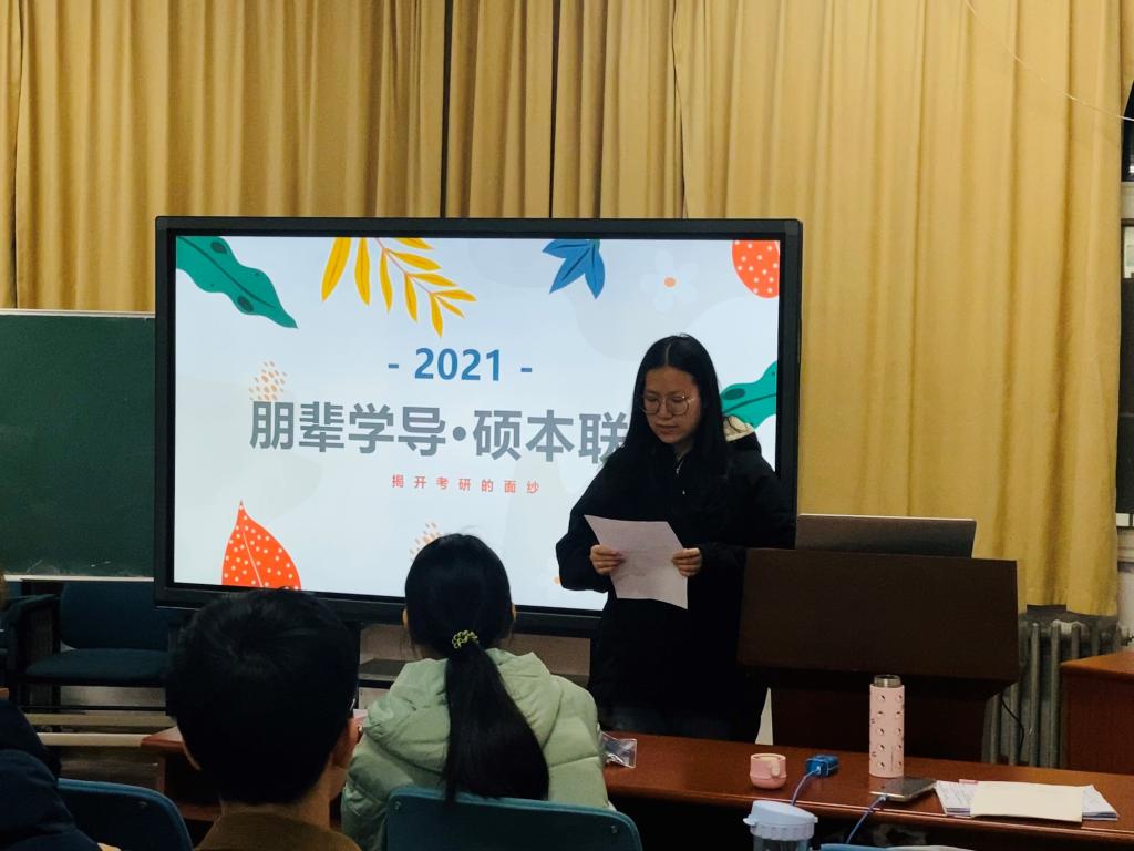 “朋辈学导•硕本联谊”活动在青岛大学浮山校区励行楼302成功举办。研究生代表刘佳伟、刘庆春、姜慧文、王敬伟、何哲、王志超,崔曼若出席此次活动,2020级各班部分同学参与。