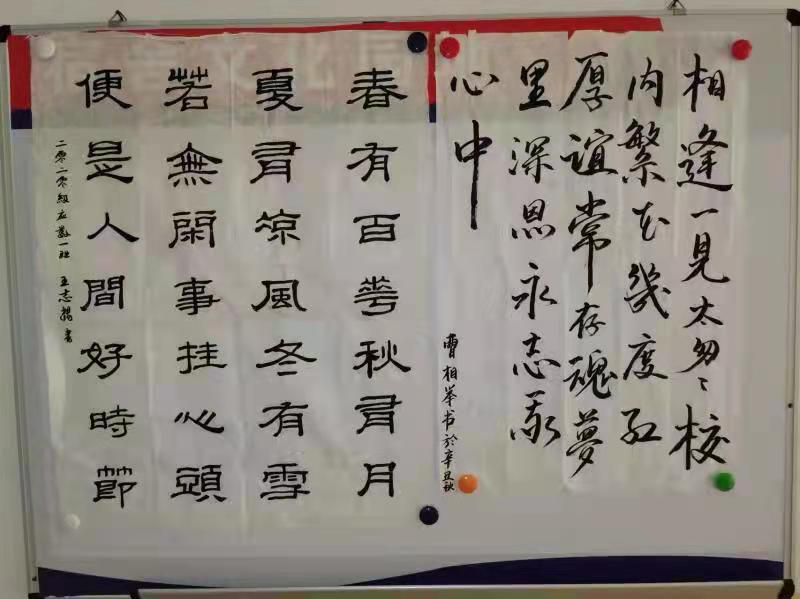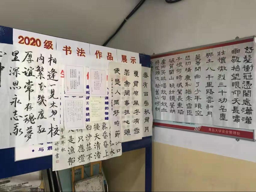 在励行楼大厅开展了以“用翰墨书香,养浩然正气”为主题的2020级书法作品展示活动。本次活动旨在庆祝建党100周年,丰富学生文化生活,挖掘学生特长,展示学生风采,引领青年学生夯实基础,砥砺前行。