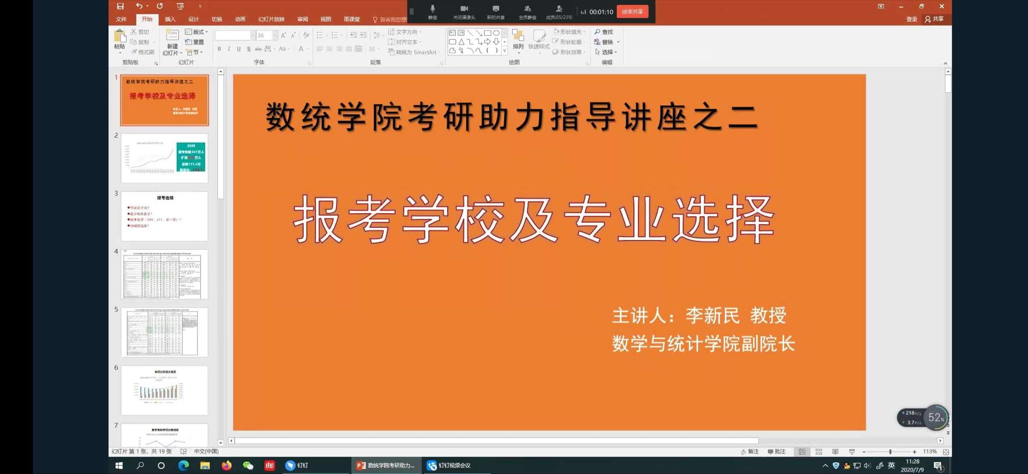 为帮助同学们备战2020年考研,7月9日,尊龙凯时国际娱乐 通过钉钉线上直播的方式召开主题为“考研学校及专业选择”考研助力系列讲座。讲座由尊龙娱乐 副院长李新民主讲,2017级考研同学参加。