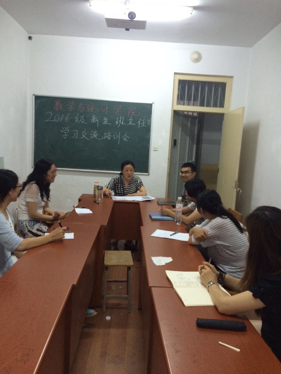 的积极动员,最终确定7名专业老师担任2016级新生班主任。张雪蕾向2016级新生班主任介绍了班主任工作的性质、特点和内容。关于如何做好新生入学教育问题,张雪蕾建议班主任发挥自身专业优势,在新生入学教育中融入专业和课程学习指导,发挥专业导师的作用,帮助大一新生尽快适应并融入大学生活。2015级优秀班主任代表高花结合自身工作经验,交流了班主任工作的心得体会,对新生班主任开展工作具有重要的借鉴学习意义。各位新生班主任也积极发言,畅谈自己对班主任工作的认识,大家讨论热烈,一致表示要尽自身最大努力做好班主任工作,成为大一新生的良师益友。