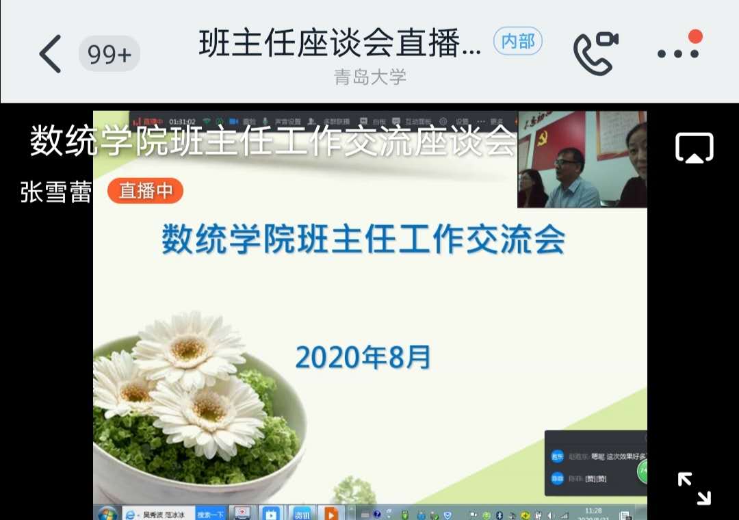 在励行楼218会议室以现场和同步直播形式召开2019级、2020级班主任工作交流座谈会。党委书记姜永杰、党委副书记张雪蕾、副院长丁洁玉、其他年级优秀班主任高花、张齐两位老师以及两个年级的全体班主任老师参加,座谈会由张雪蕾主持。