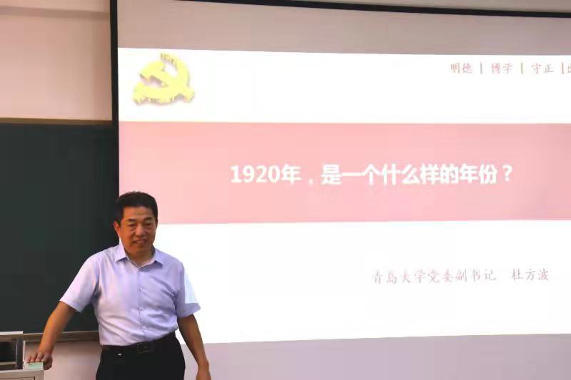 9月15日下午,校党委副书记杜方波在浮山校区博远楼206教室以“1920年,是一个什么样的年份”为题,为2019级数学与应用数学(师范类)本科生讲授了一堂别开生面的思政课。