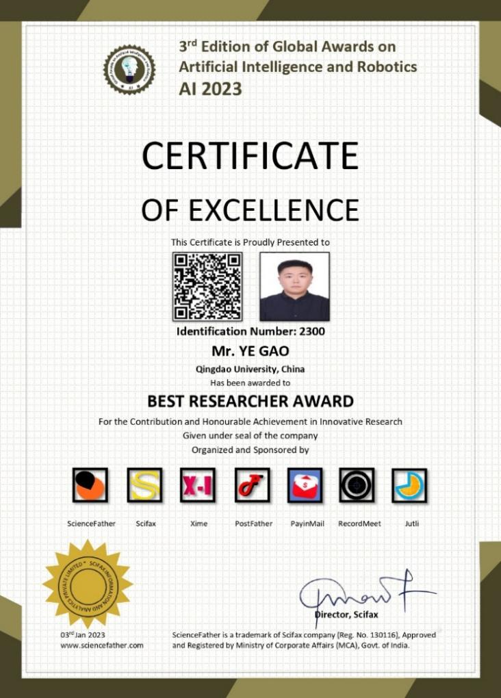 该研究是在新冠疫情背景下针对疫苗供应链管理协同方面展开,论文探讨了人工智能技术和区块链技术在疫苗供应链运营中的适用性和有效性。在经过专家提名和多轮评审后,国际学术组织ScienceFather决定授予高野2023年“最佳研究者奖” (3rd Edition of Global Awards on Artificial Intelligence and Robotics AI 2023,Best Researcher Award,ScienceFather)。“Global Artificial Intelligence”是为鼓励和表彰世界各地的研究人员和研究组织在其专业领域的重大贡献和成就而设立的,所有国籍的研究人员和学者都有资格获得“ScienceFather Artificial Intelligence Awards”。对被提名人的评判标准是:过去的成就、卓越的研究和杰出的学术成就(//artificial-intelligence-conferences.sciencefather.com/awards/)。2020-2022年,我国获得此项奖项的学者分别来自浙江大学、上海交通大学、四川大学、吉林大学、华中农业大学等高校。