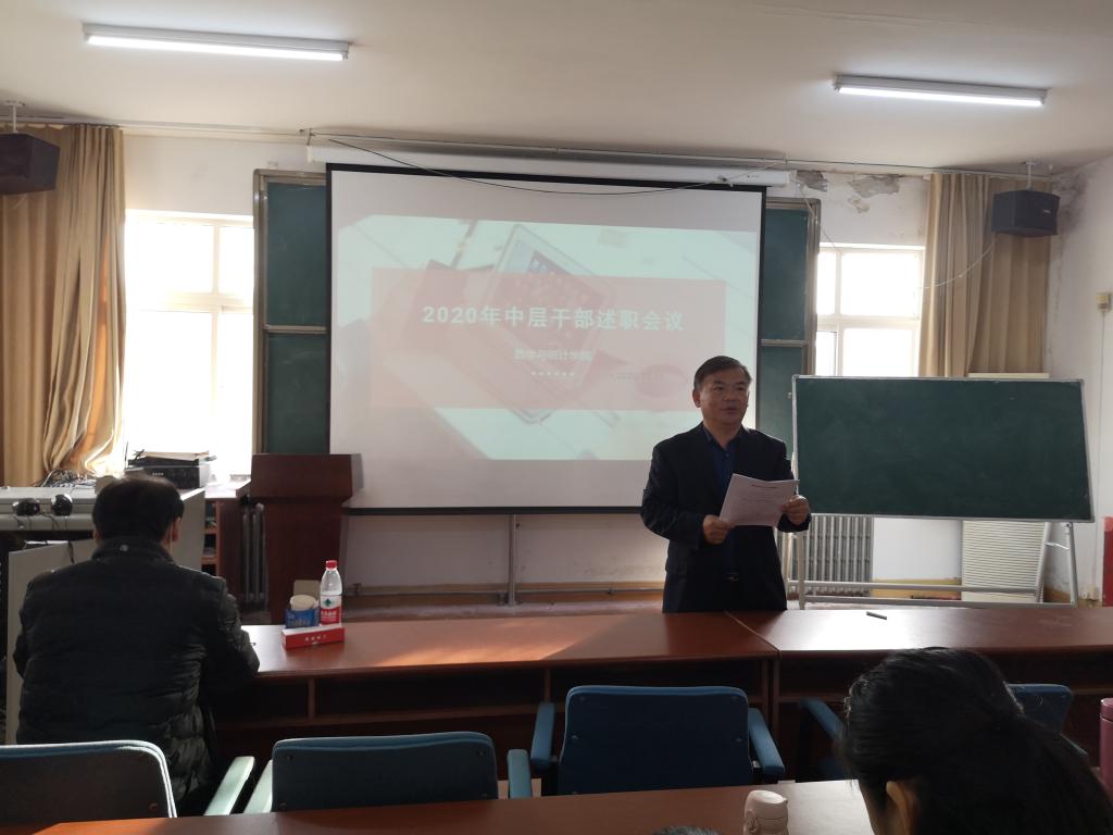 2020年度中层干部述职考核会议在励行楼302会议室召开。院党委书记姜永杰,院长高红伟,院党委副书记张雪蕾,副院长李新民,副院长丁洁玉和90余位教师参加本次会议。