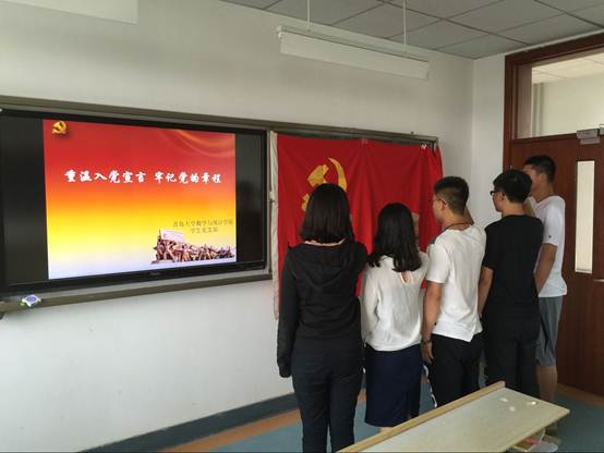 数学与应用数学专业(师)学生党员在浮山校区德音楼403举行了庆祝建党95周年活动曁“两学一做”主题活动。活动中,辅导员李玲慧带领学生党员重温入党誓词、学习《党章党规》,就“怎样做一名合格党员”展开了大讨论。辅导员强调:党员一定要不忘初心,坚信只有共产党才能发展中国,在思想和行动上成为一名合格党员。