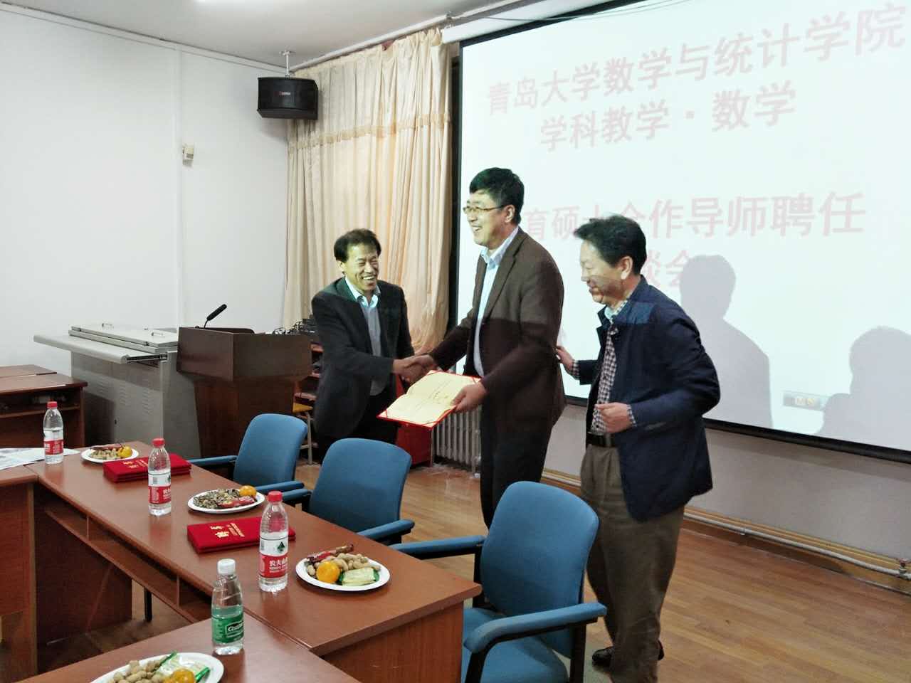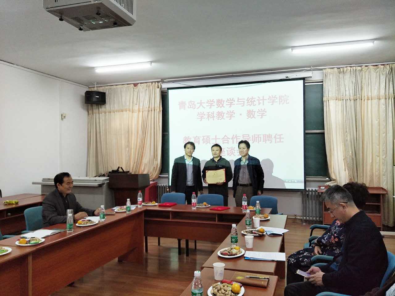 的基本情况和学科教学(数学)研究生的招生及培养情况,指出学校非常重视教育硕士专业学位研究生的培养工作,在培养方式上十分重视理论与实践相结合,实行双导师制,重视校外导师在教育硕士培养过程中的重要指导作用,校内外导师共同指导学生的学习和研究工作,同时也希望这些青岛中学数学教学的名师们为我们尊龙娱乐