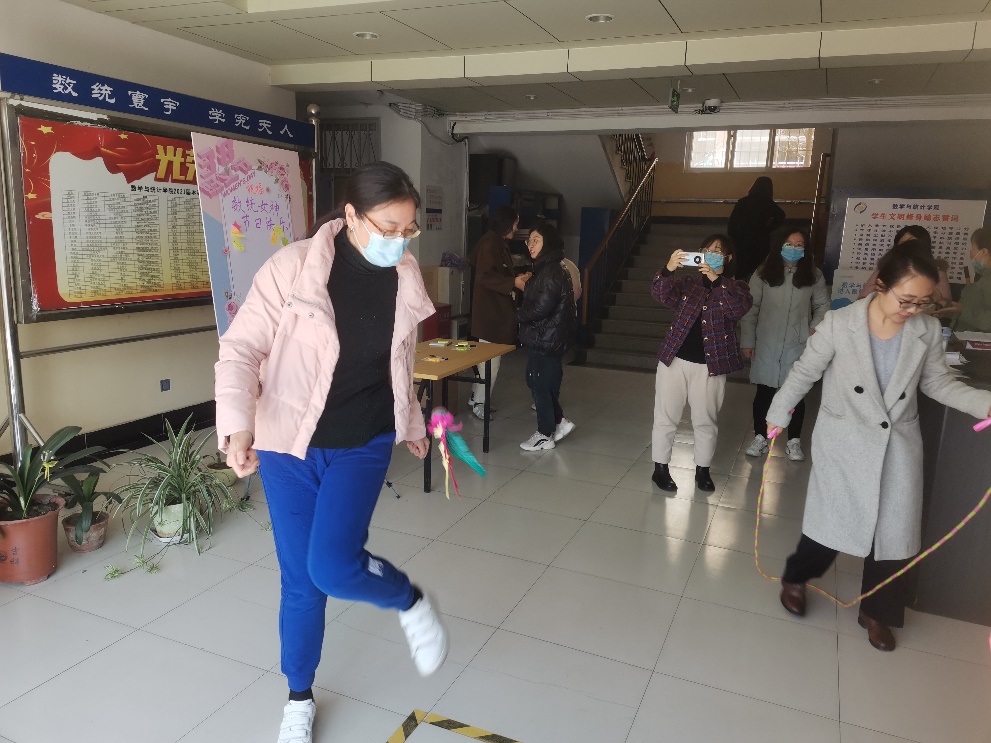 分工会于3月8日举办了“数院一家、同乐三八”女教工跳绳和踢毽子比赛,全院女教工积极参与。