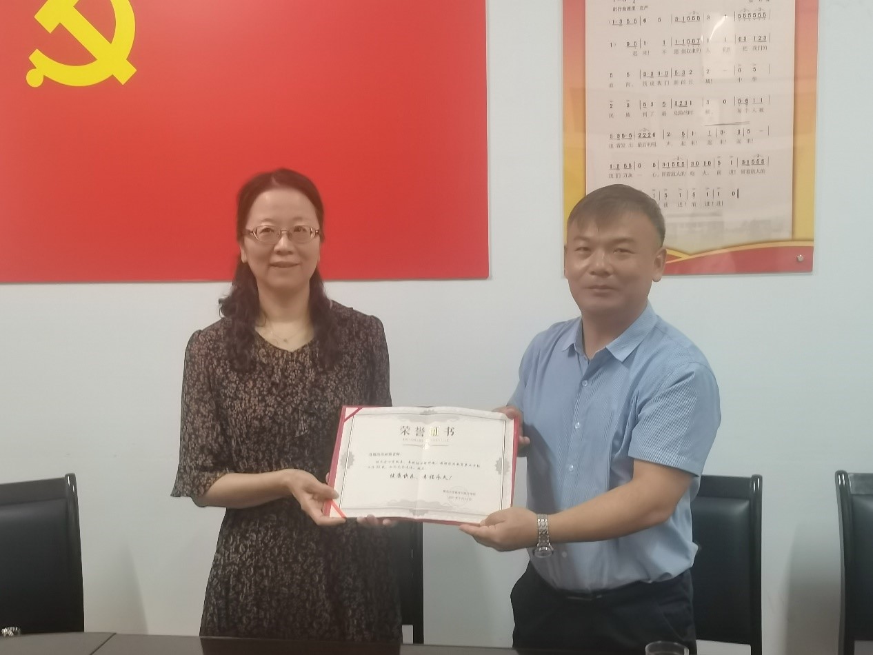 姜永杰向退休教师孙丽强颁发荣退证书,并代表尊龙娱乐