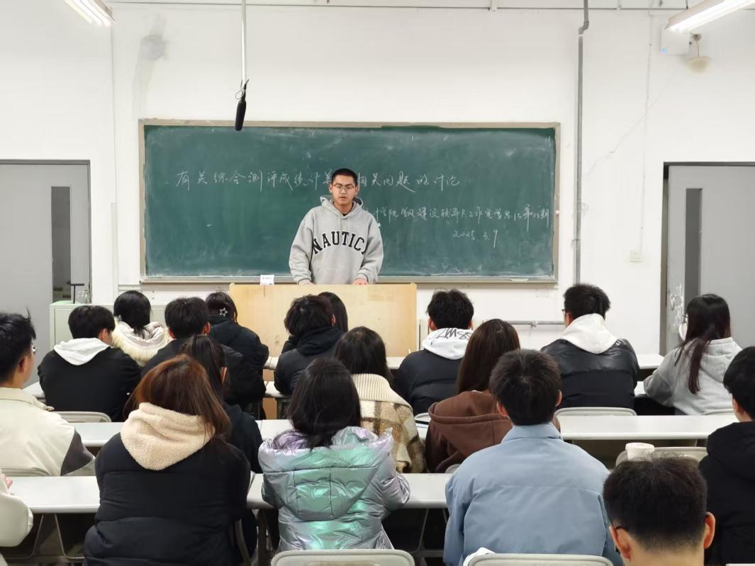于金家岭西院2号楼304开展“学风建设辅导员工作室活动‘学思汇’第十三期——有关综合测评成绩计算的相关问题的讨论”。该活动由学术中心志愿者刘欣宇主持,2024级各班班长,团支书和副班长参加。